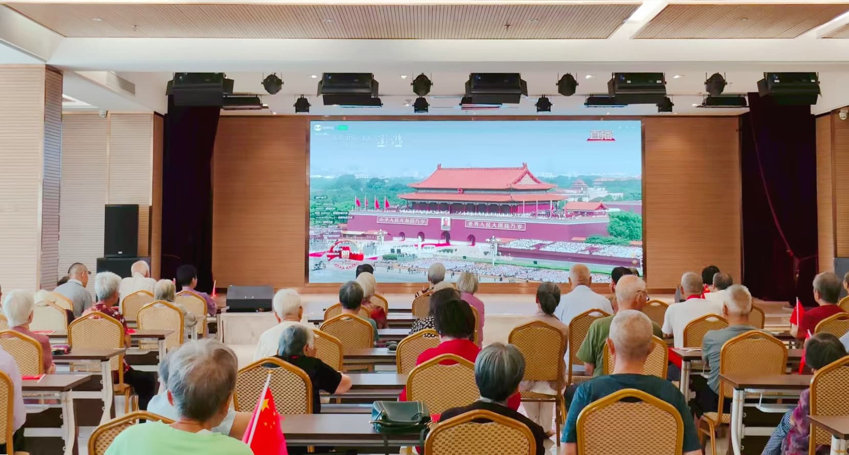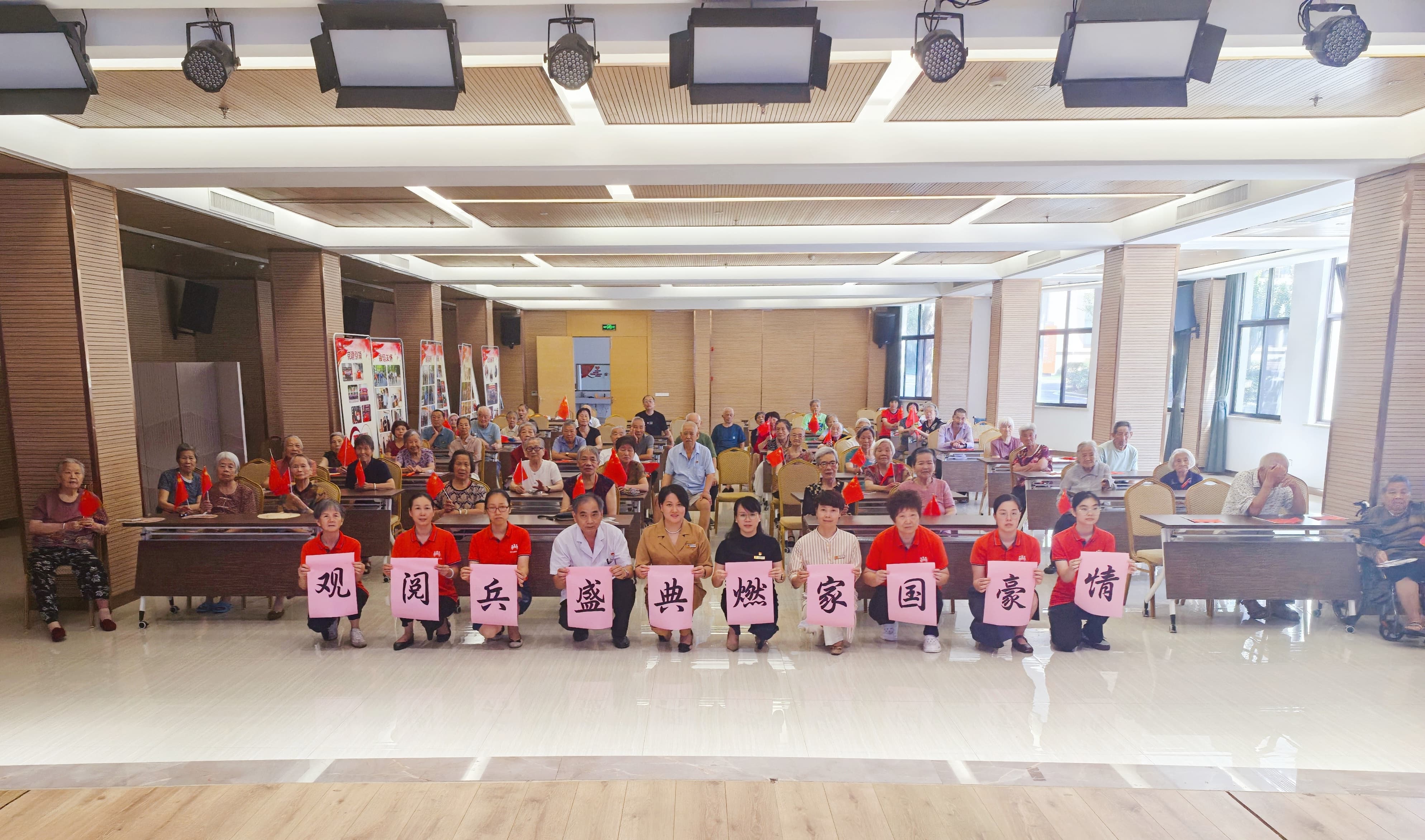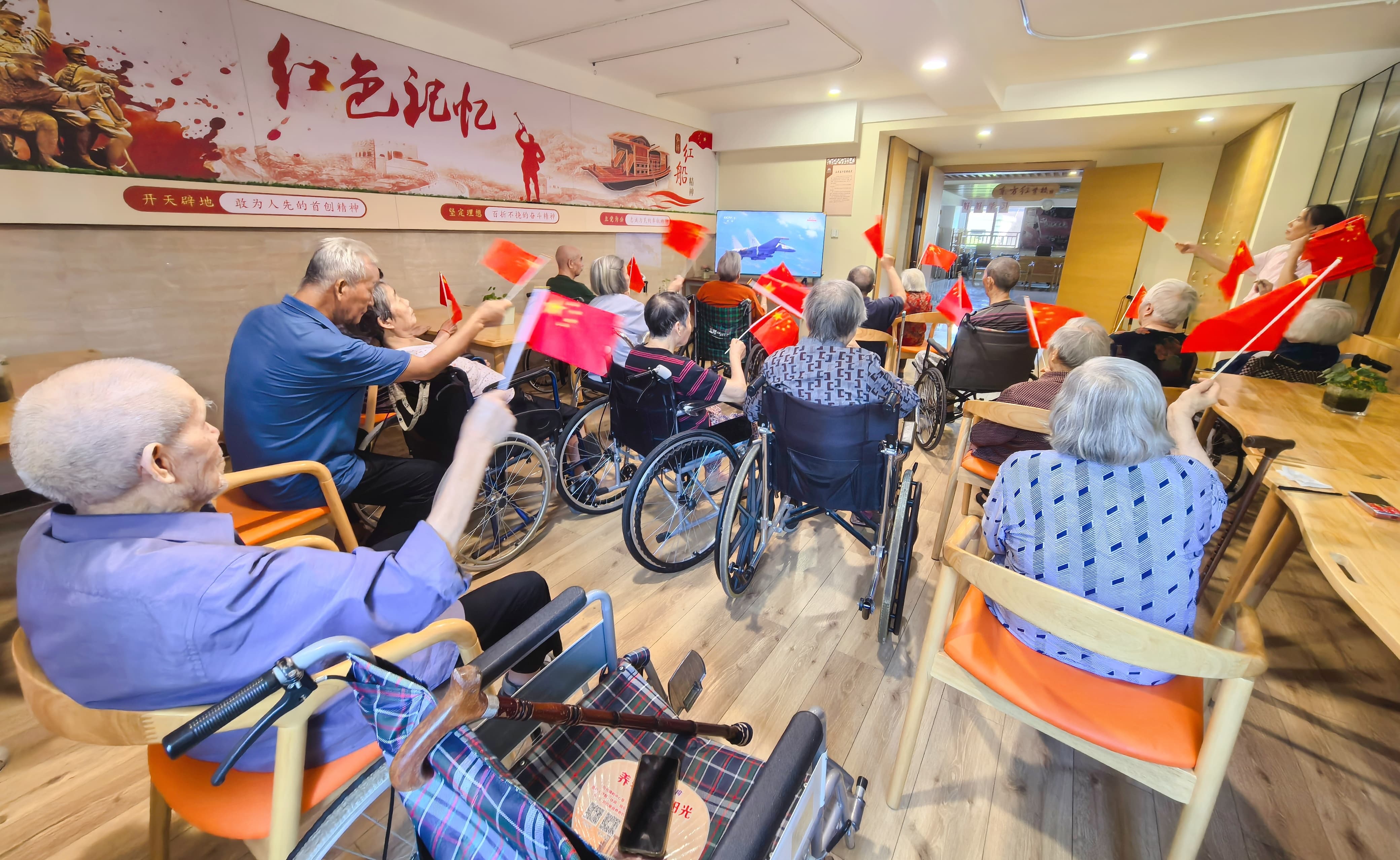 2025年9月3日,中国人民抗日战争暨世界反法西斯战争胜利80周年,天安门广场上隆重举行纪念大会,中国以盛大阅兵仪式,同世界人民一道纪念这个伟大的日子。在这个喜庆日子里,全国各地都以不同形式庆祝这一盛事,为了共同感受这一庄严时刻,中心也组织长者员工一起观看阅兵盛典。