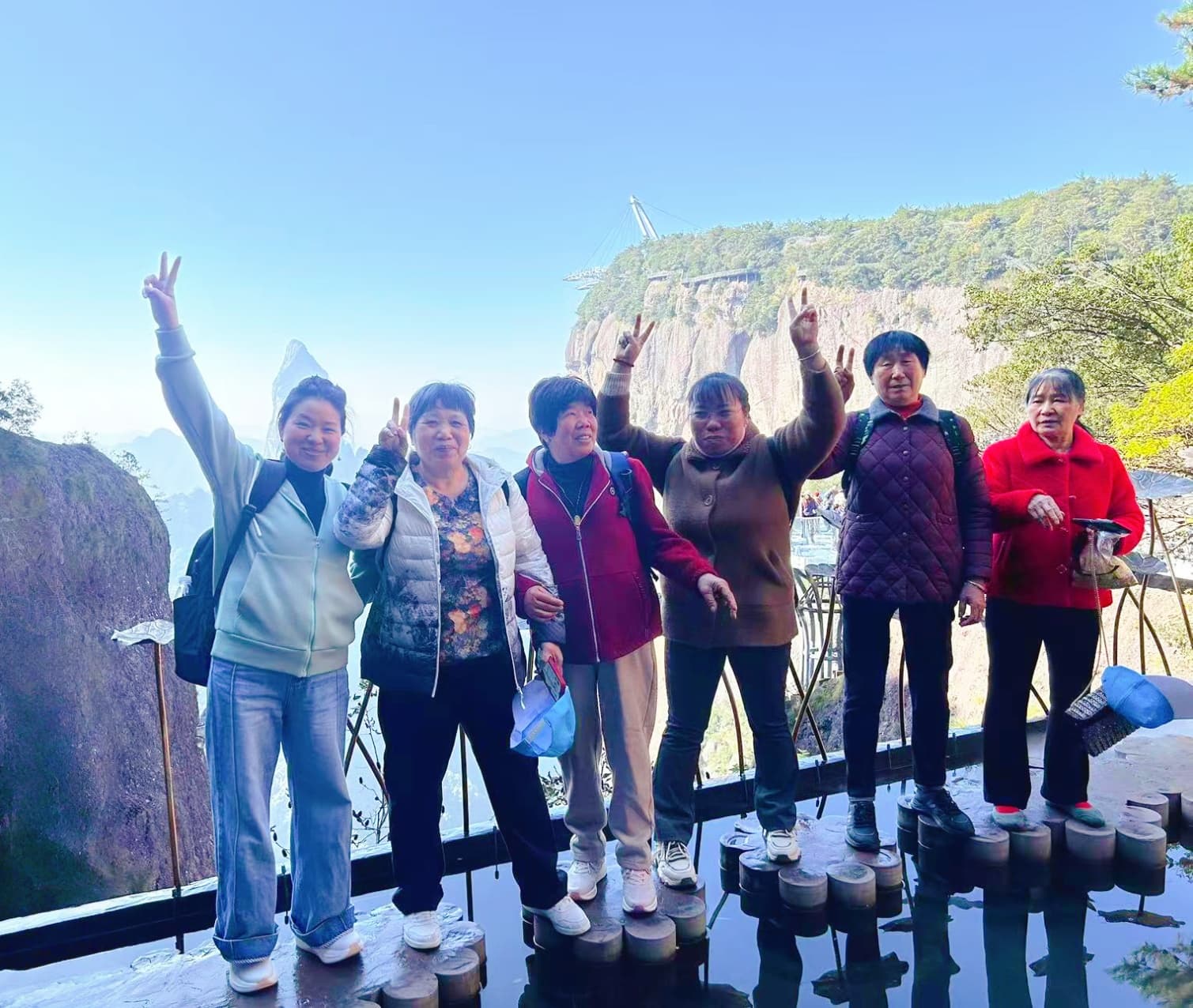 居神仙之境,揽山川之奇。步入神仙居,仿佛走入一幅流动的山水画卷。这里奇峰环峙、云雾缭绕,一山一石皆蕴灵性。员工们沿悬空栈道前行,脚下是万丈幽谷,眼前是连绵青峰,宛若漫步云端。观音峰、莲花台、如意桥等景点依次呈现,每一处都让人感叹大自然的鬼斧神工。