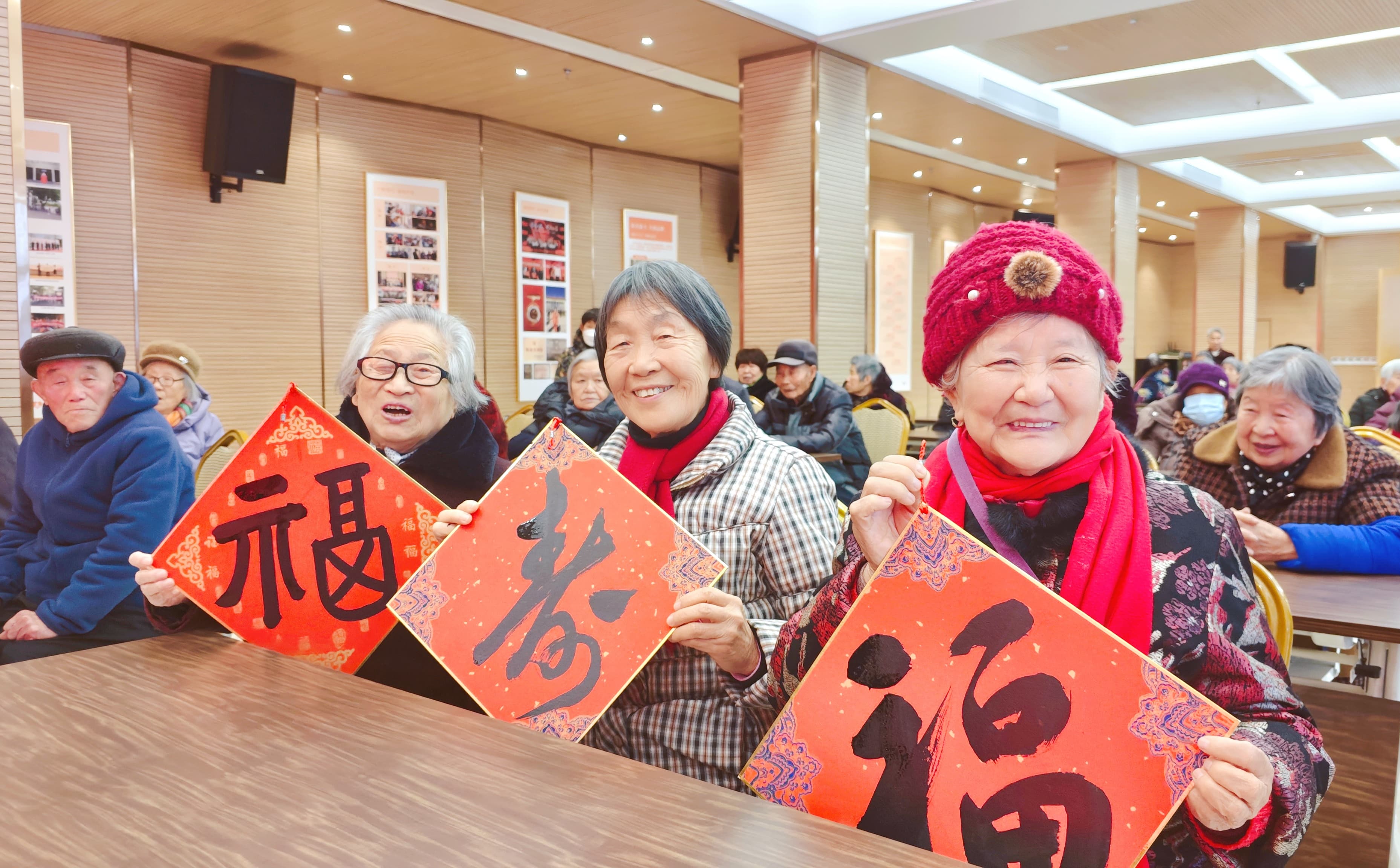 中心长者们围立桌旁,或静静欣赏书法创作,或挑选心仪的春联词句,脸上满是期待与喜悦。拿到春联和福字的长者们如获至宝,小心翼翼折叠收好,不住夸赞笔墨精良、寓意吉祥,热闹祥和的氛围感染着在场每一个人。工作人员与志愿者们主动上前帮忙抻纸、晾联,还贴心与长者唠家常,询问身体状况,叮嘱冬日保暖,让长者们在感受传统文化魅力的同时,更体会到贴心关怀。